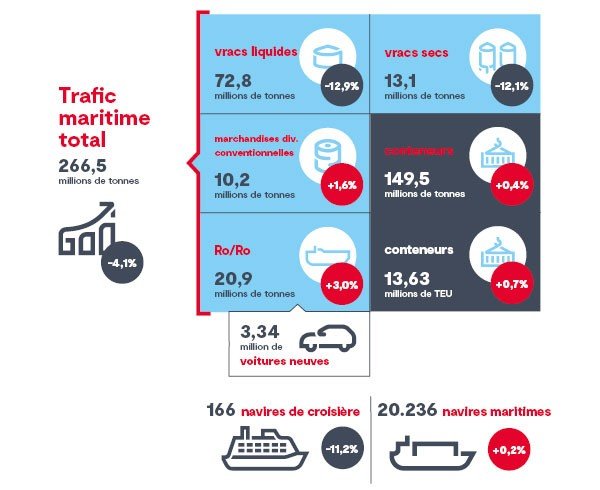 Le port reste une plateforme d'importation et d'exportation importante, mais en 2025, la part des importations s'est renforcée pour la plupart des trafics.